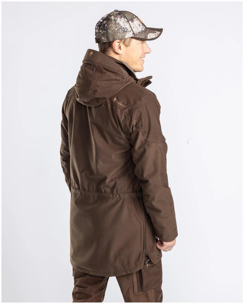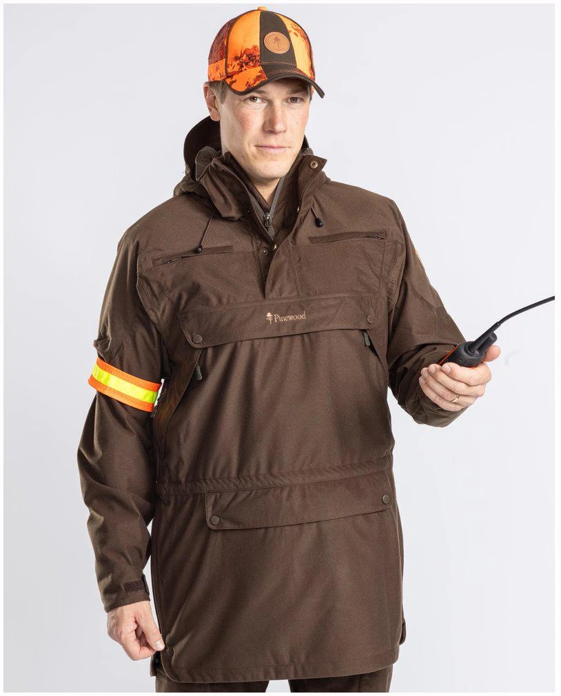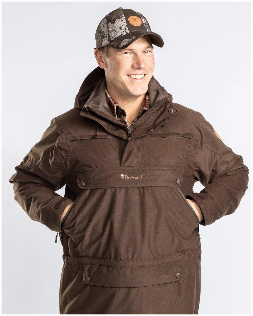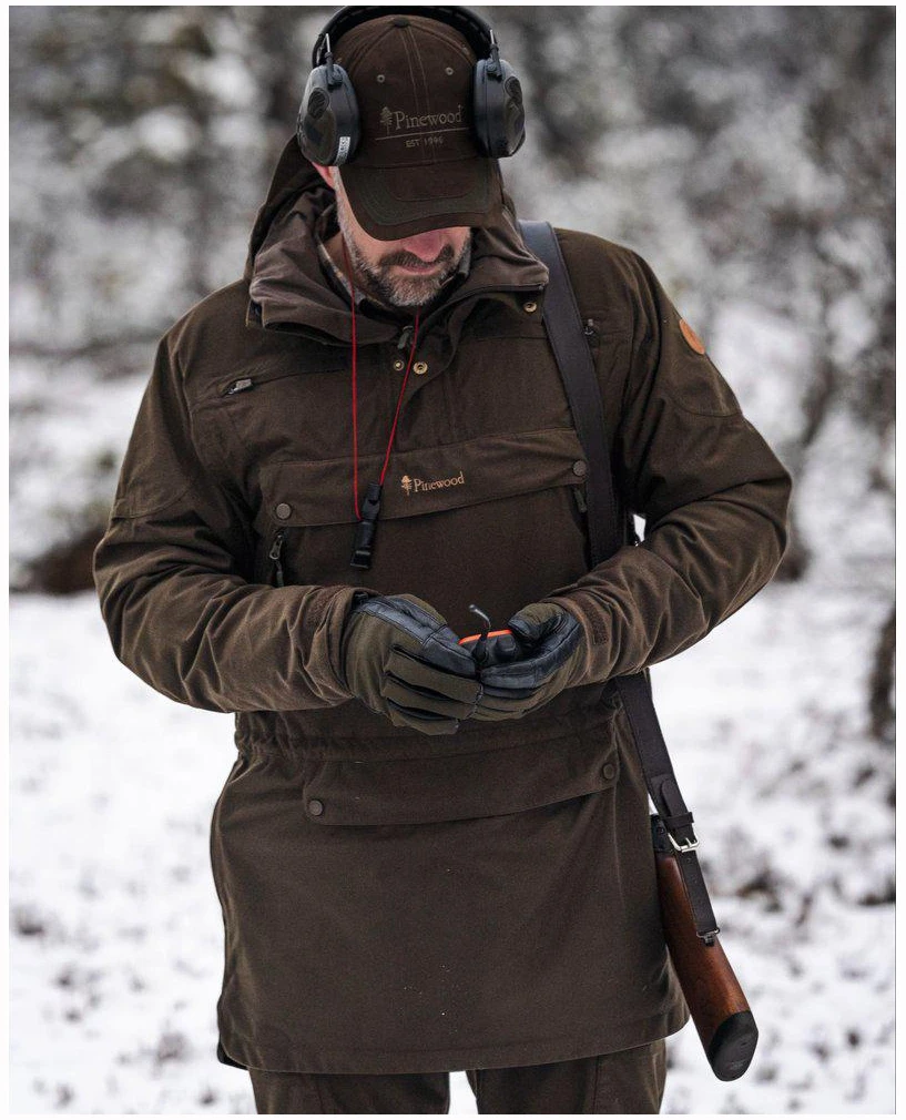 Anorakken inkluderer mansjetter med tommelhull og justerbare ermeender med borrelås for en perfekt passform, og en subtil Pinewood-logo® i syntetisk skinn for en elegant touch. Uavhengig av værforhold er denne jaktanorakken klar til å følge deg på dine mest krevende eventyr.