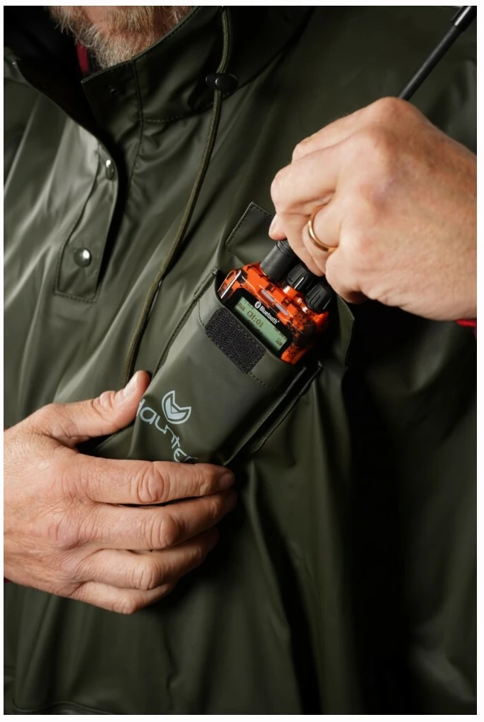 Regnponcho i myk PU-belagt polyester med radiolomme fra Haunter Wear.