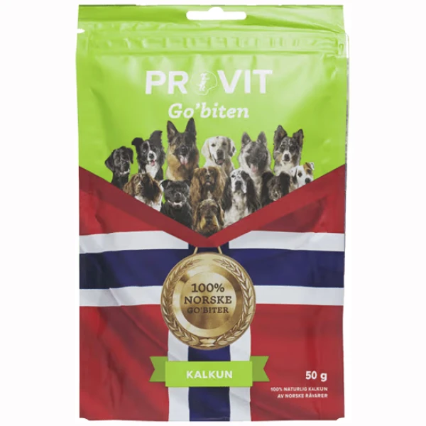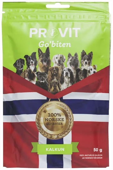 ProvitProvit Go’biten Kalkun er en helt naturlig hundegodbit laget av 100% norsk kalkun – fri for kunstige tilsetninger, fargestoffer og konserveringsmidler. Dette er en ren singelprotein-godbit som passer perfekt for hunder med sensitiv mage eller allergier.