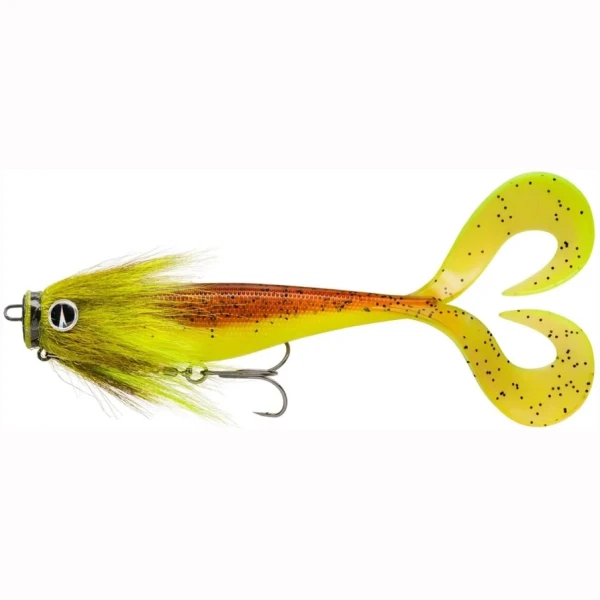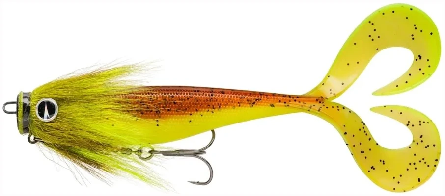 Ferdigrigget utgave av Rapala Soft Olio kombinerer en myk gummikropp med en VMC Mustache Rig for å skape et kraftfullt agn rettet mot stor gjedde.