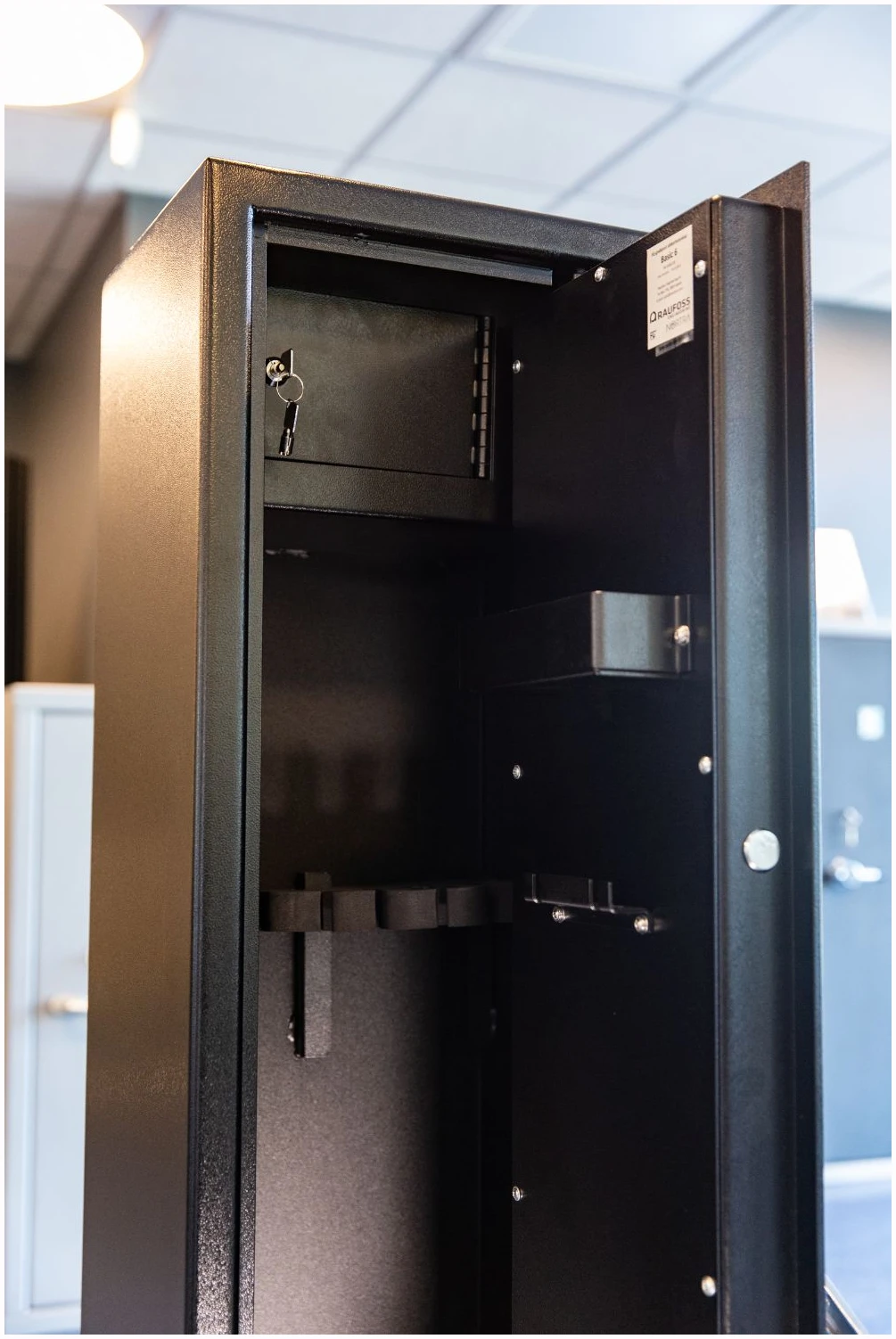 Raufoss Basic 6 er et romslig våpenskap for inntil 6 våpen som dekker de fleste sikringsbehov. Våpenskapet er lakkert i en elegant svartfarge.
