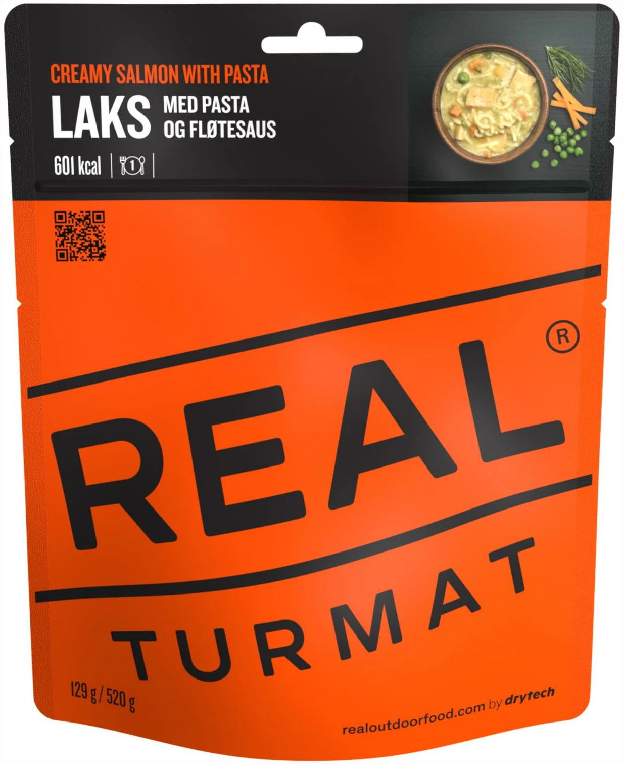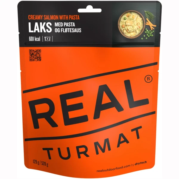 Drytech30% Pasta (durumhvete), 16% fiskeprodukt av laks (92,6% laks, salt), 15% gulrot, løk, 8% erter, 8% fløte (melk), hvetemel, rapsolje, maisstivelse, fiskebuljong (fisk, salt, maltodekstrin, gjærekstrakt, grønnsaker, rapsolje, krydder), pepper, 0,04% dill, antioksidant (rosmarinekstrakt, askorbinsyre), kan inneholde spor av soya.
