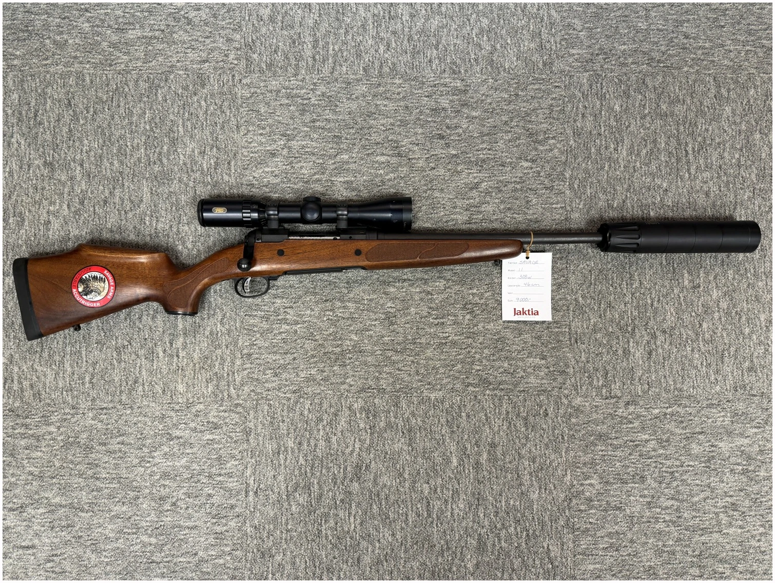 Savage Model 11 i kaliber .308 Win med Tasco Titan 3-9×40 kikkert og A-Tec H2 lyddemper.