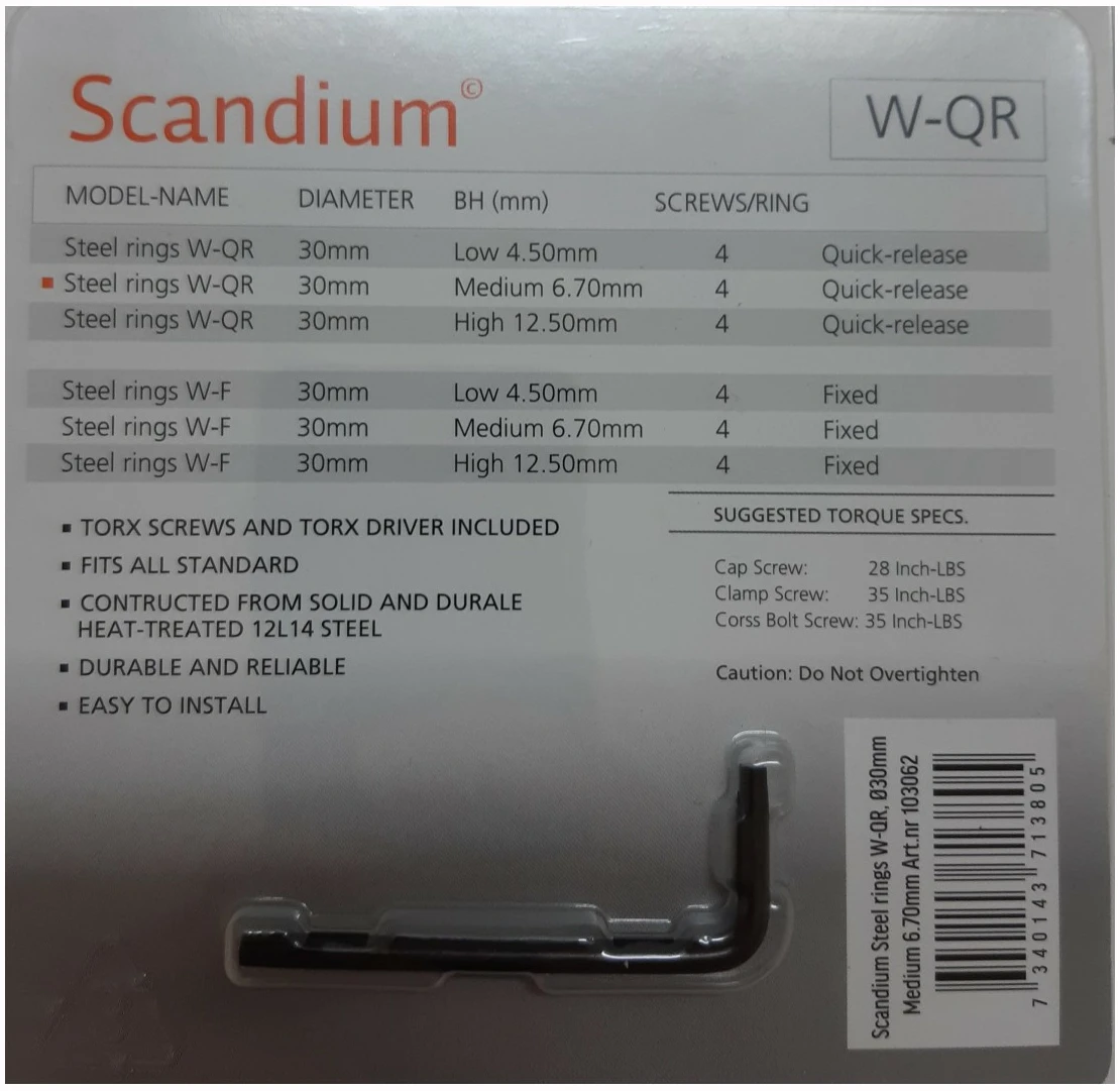 Scandium Fixed Ringer(uten quickrelease) . Lav 4,5mm, Medium 6,7mm og Høy 12,5mm. Stål ringer som passer til Weaver/Picatinny