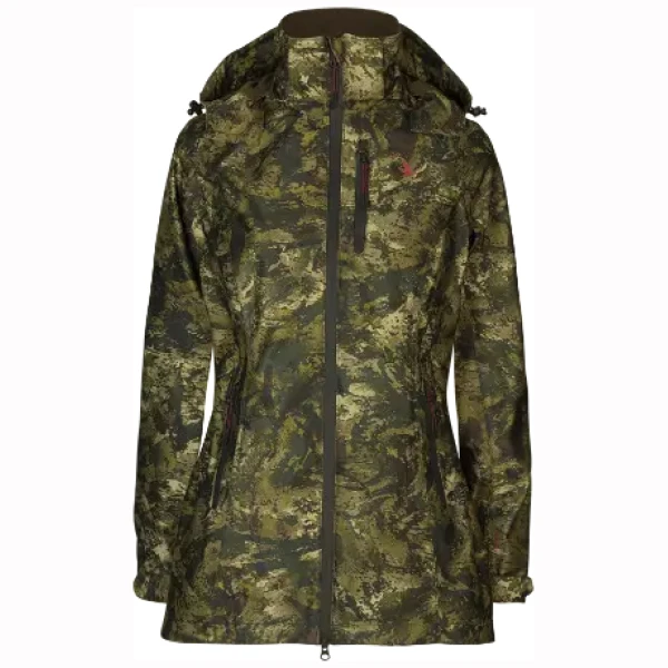 Avail Camo Women-jakken: Stilig komfort som smelter sammen med naturen. Denne jakken med INVIS®-kamuflasje er laget for den feminine kroppsformen. Hold deg tørr og jakt lenger med PFC-fri SEETEX® værbeskyttelse.