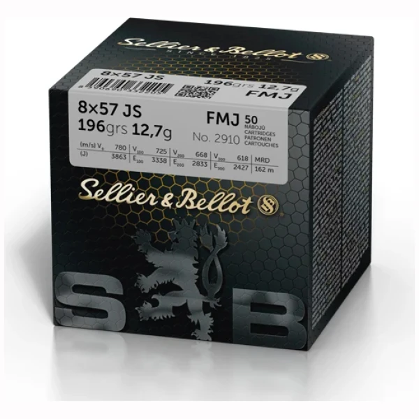 S&B 8×57 IS 196grs FMJ er en pålitelig øvelsespatron laget for presisjons- og baneskyting. Leveres i praktisk 50-pakning og har en 196 grains helmantelkule (Full Metal Jacket) som gir konsekvent ballistikk og god mating i standard rifleladere.