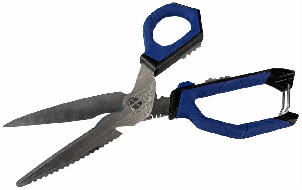Denne saksa er ypperlig til klipping av agn. Agnsaksa er produsert i rustfritt stål, og den er dermed meget motstandsdyktig mot korrosjon. Den taggete delen er en skjellskrape. Linekutteren har du enkel tilgang til, uansett om saksa er ute av eller inni hylsteret.