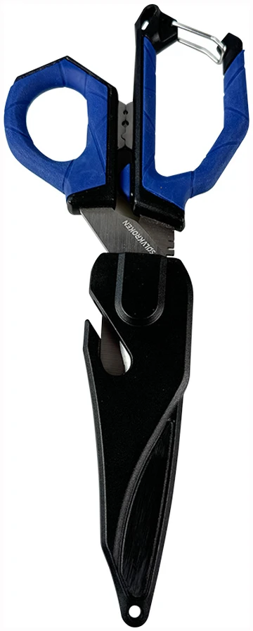 Leveres i et solid hylster. Saksa klipses enkelt på havfiskedressen, fiskeveska eller i beltet i toppen av håndtaket. Disse er også ganske romslige, slik at det er enkelt å bruke multisaksa også når du har på deg hansker.