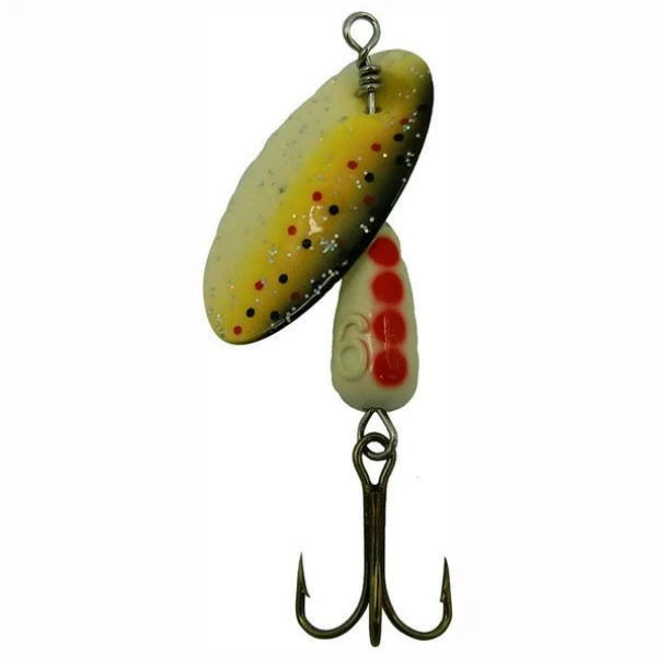 Kombinasjonen av farger og bevegelser lokker selv den tregeste fisk til hugg! Noen av spinnerne har også fått en lokkende fluekrok.