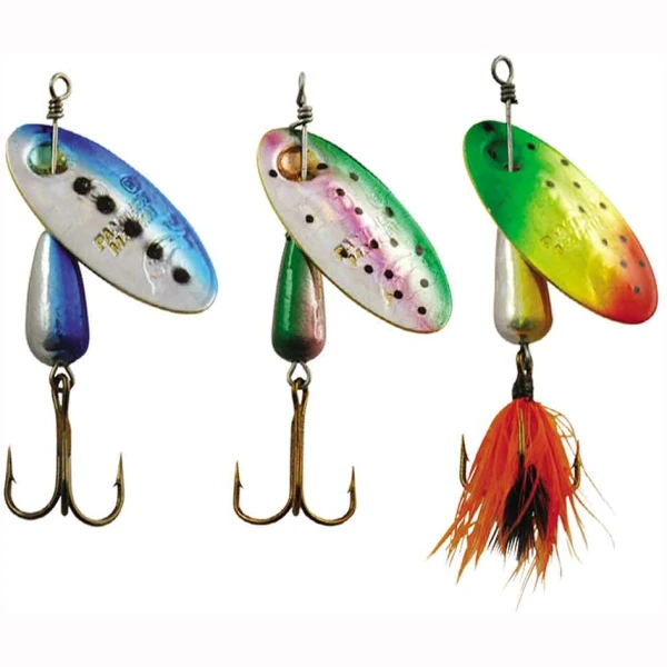 Spesial Spinner er lett å kaste langt på grunn av den unike dråpeformen. Holografisk finish gir ekstra spennende lysrefleksjoner under vann, og fungerer både i klarvær og under mer ruskete forhold. Alle tre veier 9 g. Disse er gode til både ørret- og abborfiske.