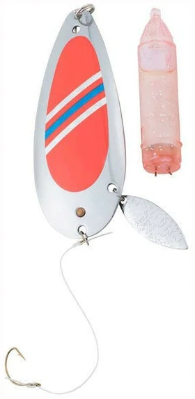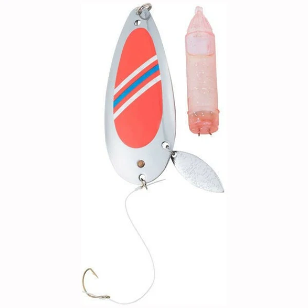 Dette er en klassisk røyeblink i effektive farger, som gull, sølv og kobber med innslag av kontrastfarger. I tillegg følger det med LED-lys og en ekstra liten lokker, samt maggotkrok.