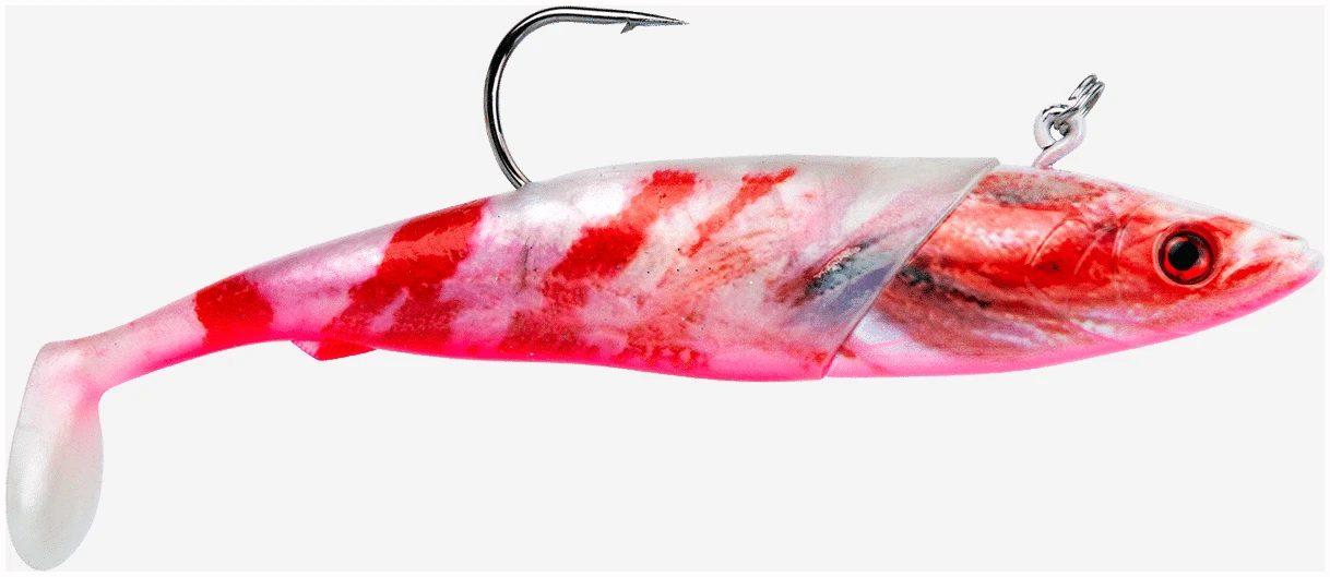 Shaden leveres i naturtro fargekombinasjoner med klare triggerpunkter – enten selvlysende buk eller hale i sjokkfarger. Dette skaper høy kontrast og vekker rovfiskens instinkter, selv under vanskelige forhold og på store dyp.