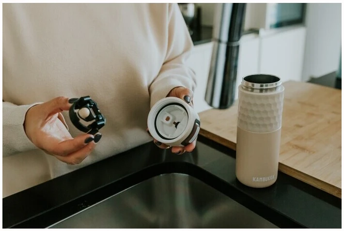 Etna Grip 500ml, Kambukkas bestselgende termokopp! En lekkasjesikker og sølefri termokopp som holder drikken din varm i 9 timer (eller kald i opptil 18timer). Med det multifunksjonelle lokket kan man enkelt veksle mellom 3 alternativer; åpen, 100% låst eller «push-to-drink». Alt med en hånd. Termokoppen er laget med dobbeltveggs vakuumisolert 18/8 rustfritt stål for best kvalitet. Etna Grip er BPA-fri, noe som sikrer at slurkene dine er trygge og sunne. Etna-lokket med Snapclean®, den avtagbare delen i lokket, går i oppvaskmaskin.