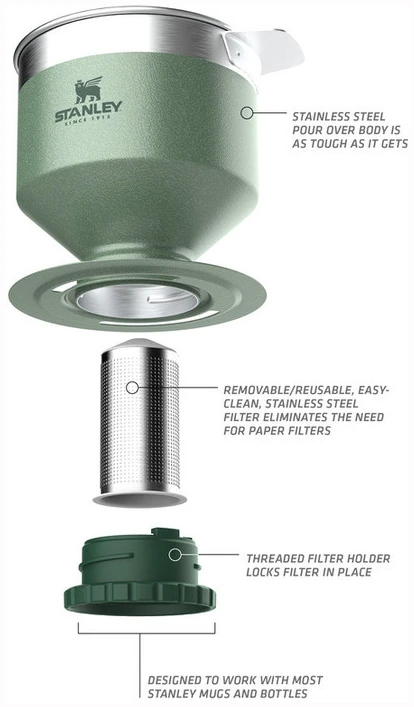 Stanley Kaffebrygger – nyt nytraktet kaffe hvor som helst! Perfekt på tur eller hjemme. Enkel i bruk, passer de fleste Stanley-kopper og har innebygget rustfritt stålfilter uten behov for papirfilter.