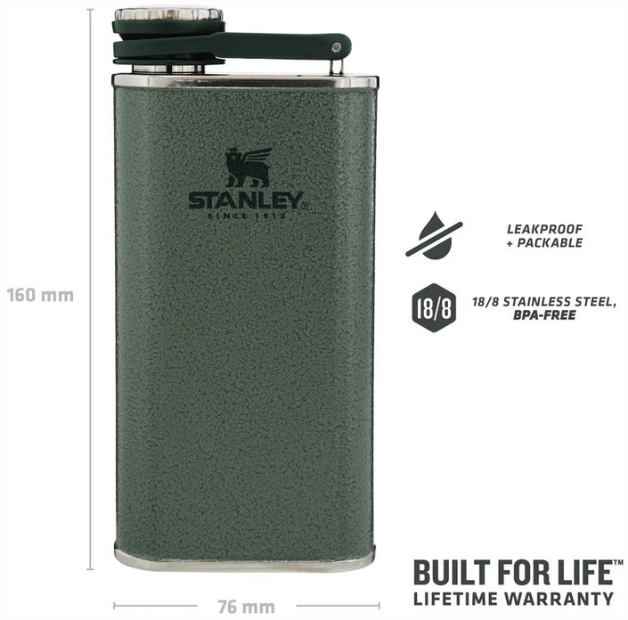 Dette er lommelerken som aldri svikter deg – med mindre den selvfølgelig er tom. Den retroe stilen, den bærbare størrelsen og den slanke silhuetten gjør at den kan gli sømløst inn i enhver situasjon. Det er en bred åpning for enkel påfylling (ikke behov for trakt). Og konstruksjonen i rustfritt stål med lekkasjesikker kork gjør den ekstra holdbar.