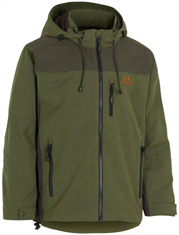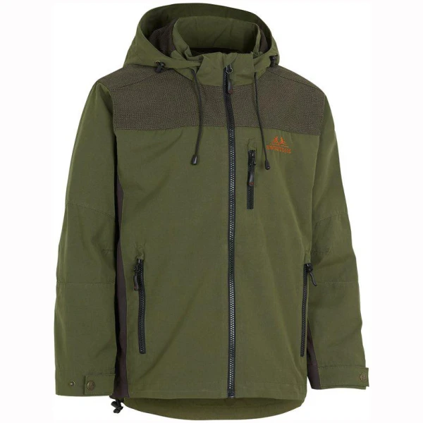 En vindtett og vannavvisende jaktjakke for barn og unge. Laget av lett og pustende materiale med forsterkede skuldre.