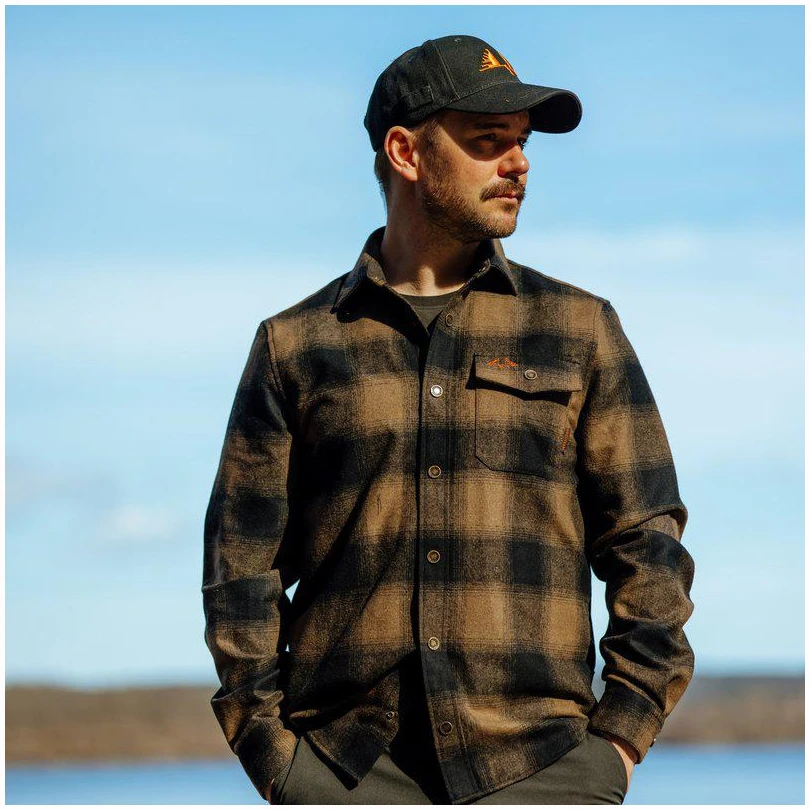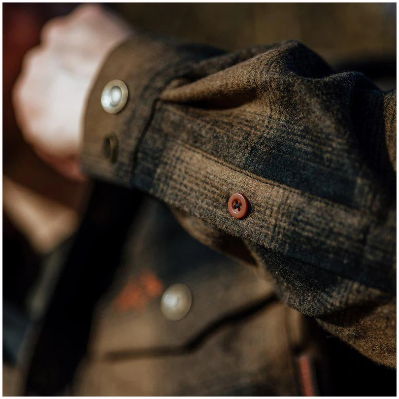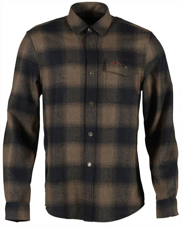 Varm og lett jaktskjorte i ull og polyestermix med trykknapper.