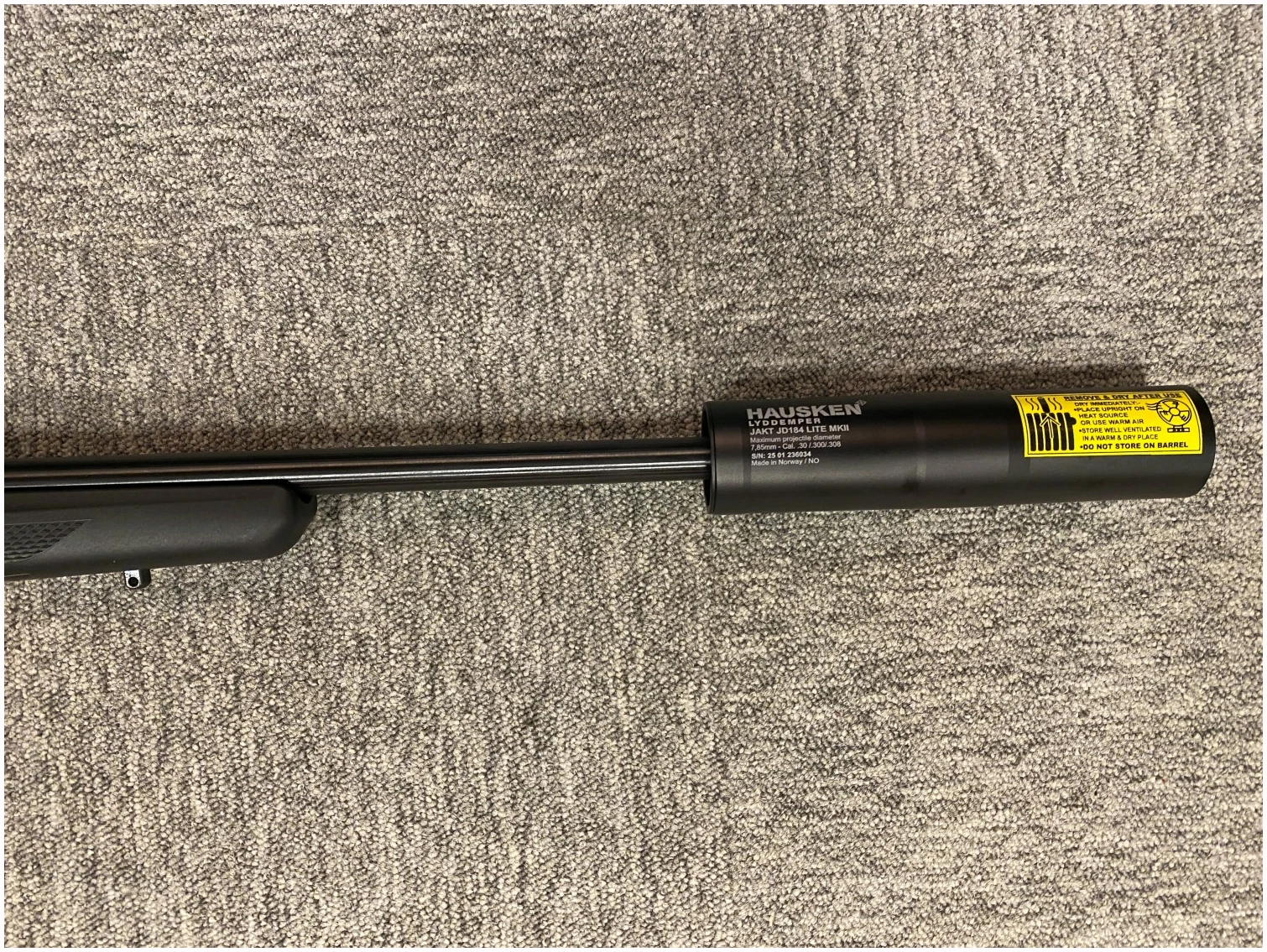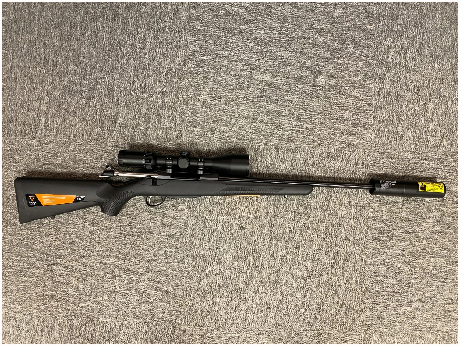 Tikka T3x Lite med gjenger 15×1 er en allsidig rifle designet for jegere som ønsker presisjon, komfort og pålitelighet i ett og samme våpen. Denne lettvektsriflen på 2,8 kg har en frittliggende pipe med gjenger 15×1, noe som gjør den perfekt for montering av lyddemper, som i denne pakken inkluderer Hausken JD184 for redusert rekyl og bedre skuddkomfort.