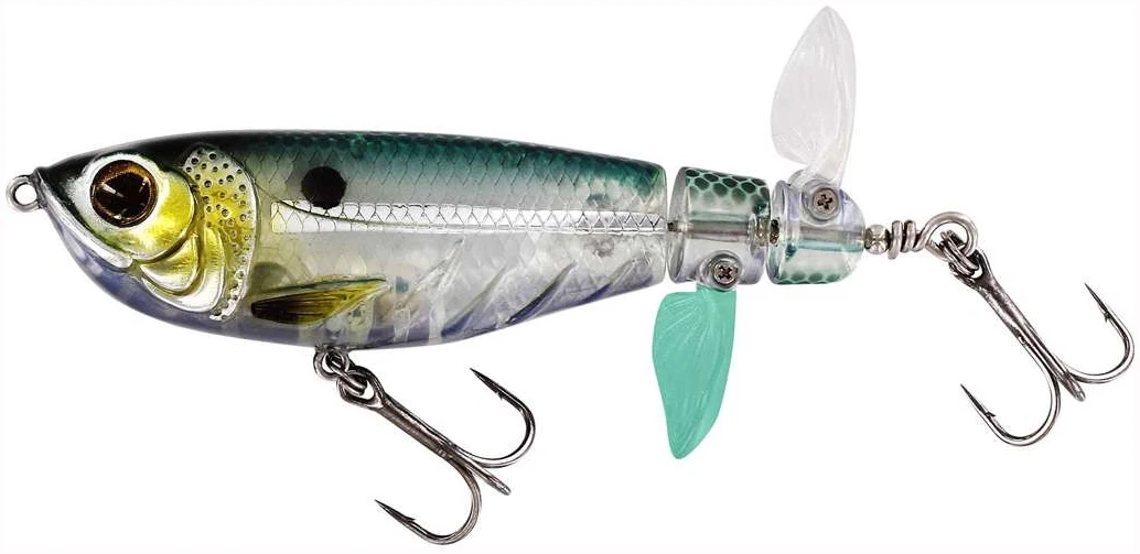 Spot-On Twin Turbo overgikk virkelig forventningene våre. Dette kraftige toppvannsagnet har en unik patentert design som gjør den uimotståelig for rovdyr som fôrer på overflaten. Den brede profilen og naturtro fiskemønstrede kroppen, sammen med realistiske øyne, gjør dette til et vanskelig mål for bass, snook, abbor, uer og havabbor å motstå. Det brede hodet skaper et kjølvann på overflaten, mens tvillingpropellene beveger seg uavhengig av hverandre, den ene går med klokken, den andre mot klokken, for å skape en unik lyd som tiltrekker fisk. Kombinert med det lavfrekvente interne lydkammeret, kunngjør Spot-On Twin Turbo sin tilstedeværelse som ingen annen lokke. Superenkel å fiske, den hopper uansett hastighet du henter. Fordi de doble propellbladene svinger i motsatte retninger, beholder lokket stabiliteten, uansett hvor raskt eller sakte du henter det. De supertøffe halvmyke propellene foldes flatt mot kroppen ved støping, og skaper mindre motstand, og gir lengre og mer nøyaktige kast. Så, når en fisk biter ned, foldes propellene og gir bedre hooking-ups. Sett apporten på pause og Spot-On Twin Turbo sitter baklengs, de ultraskarpe krokene klare for ethvert rovdyr som slår til. Designet til Spot-On Twin Turbo er så unikt at det er beskyttet av et designpatent.